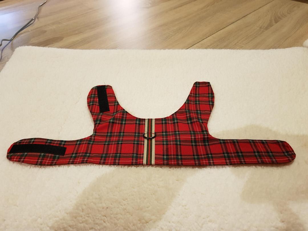 Een seizoensstuk met instant wintergevoel: dit handgemaakte harnasje in rood-groen ruitmotief is gevoerd met een kwaliteitsvoering in rood en geeft uw hond een warme, feestelijke uitstraling. Ideaal voor winterwandelingen, gezellige momenten thuis of een stijlvolle seizoenslook.