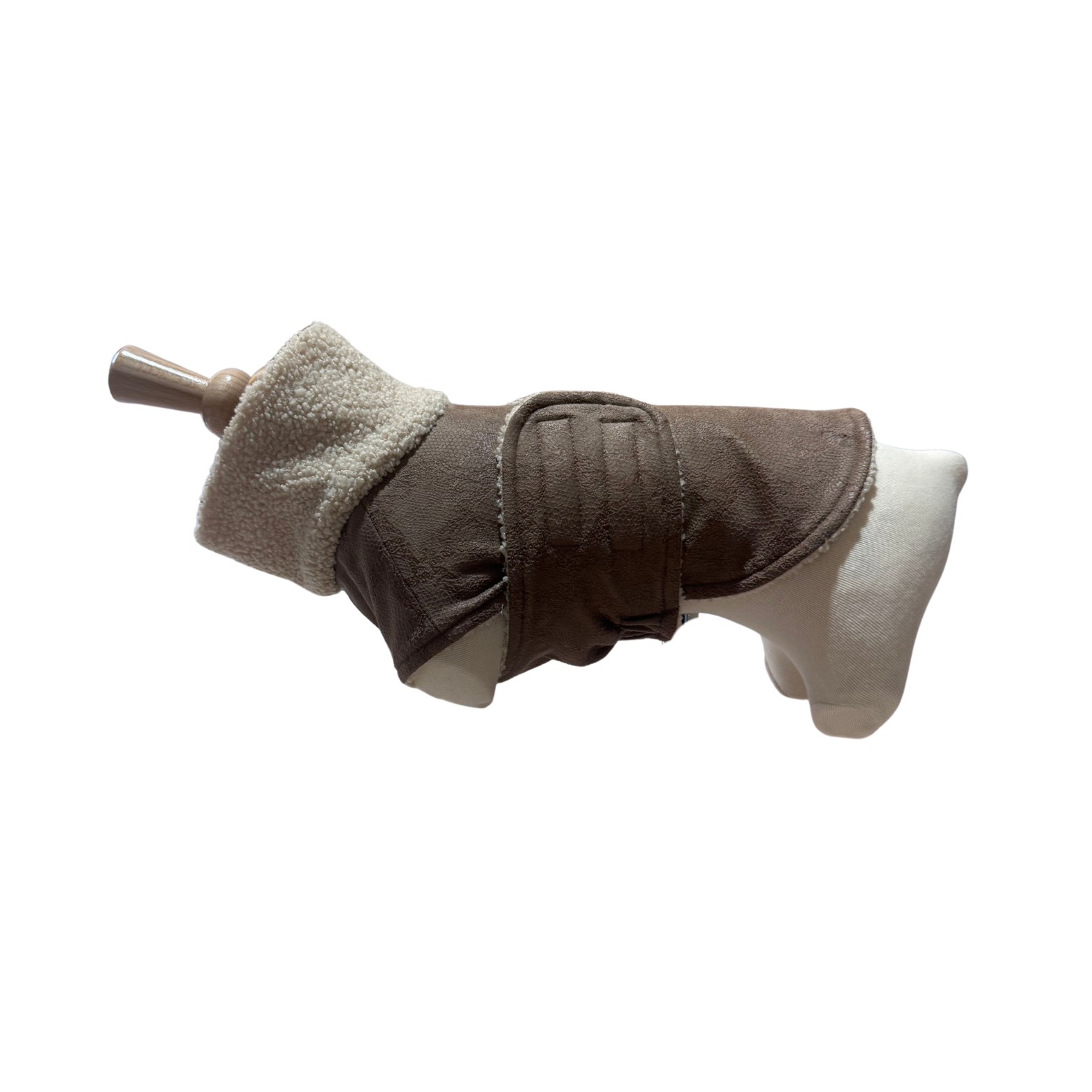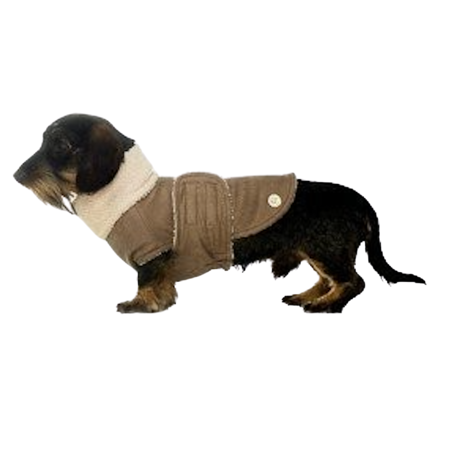 Deze elegante hondenjas in zandkleurige stof met zachte sherpa kraag is perfect voor de koudere maanden. Het design straalt rust, klasse en comfort uit – ideaal voor de hond die er graag stijlvol én warm bijloopt.