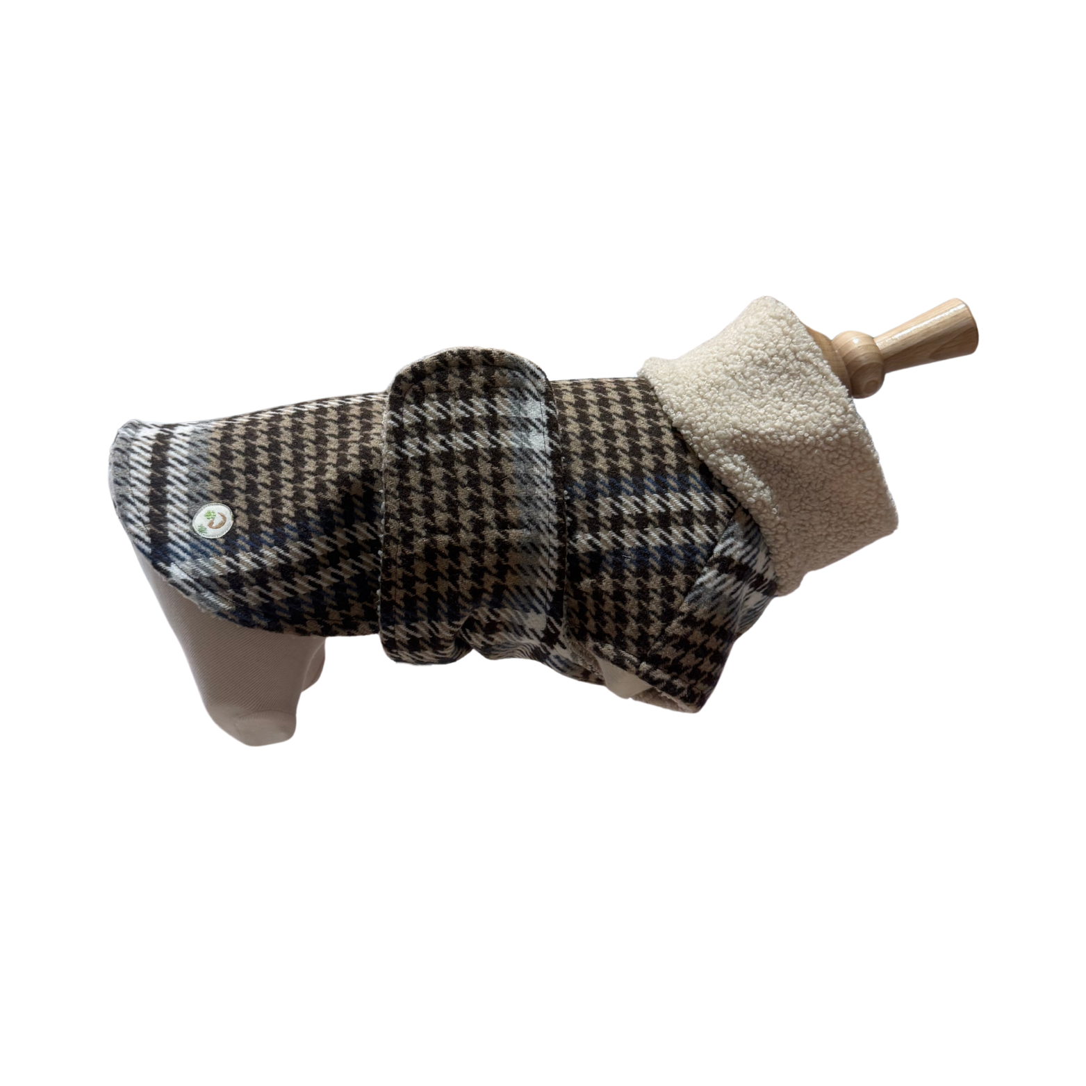 Deze prachtige hondenjas teddy/karo combineert comfort en elegantie in één unieke creatie. De jas wordt met de hand gemaakt op maat, waardoor hij perfect aansluit bij het lichaam van jouw hond. Dankzij de warme teddyvoering en het stijlvolle buitenmateriaal in karo-patroon blijft je viervoeter beschermd tegen kou en wind, in alle comfort én met een modieuze uitstraling.