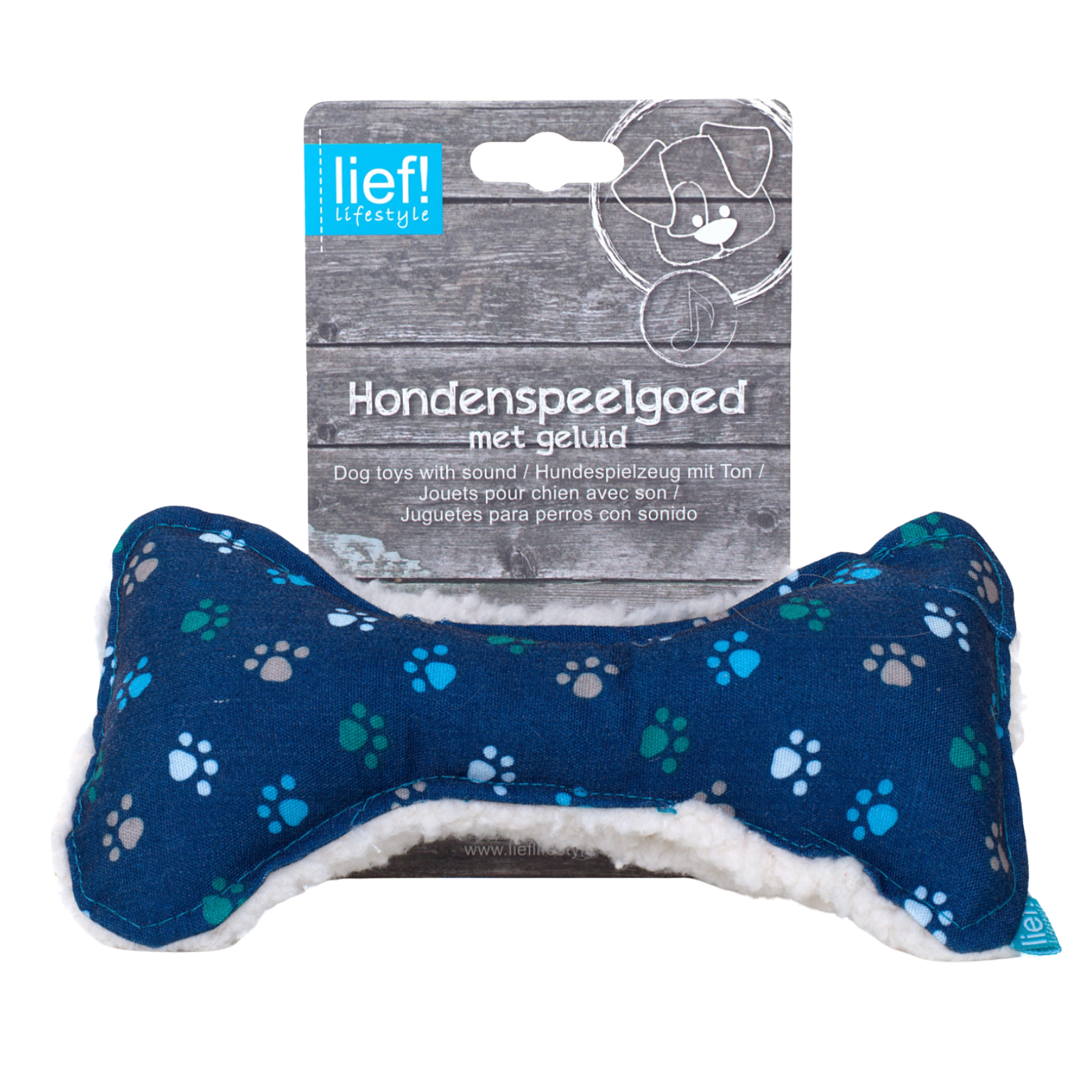 Verras je hond met het LIEF! GIRLS & BOYS Bot, een vrolijk speeltje in de vorm van een bot met een leuke print en ingebouwde bieper.