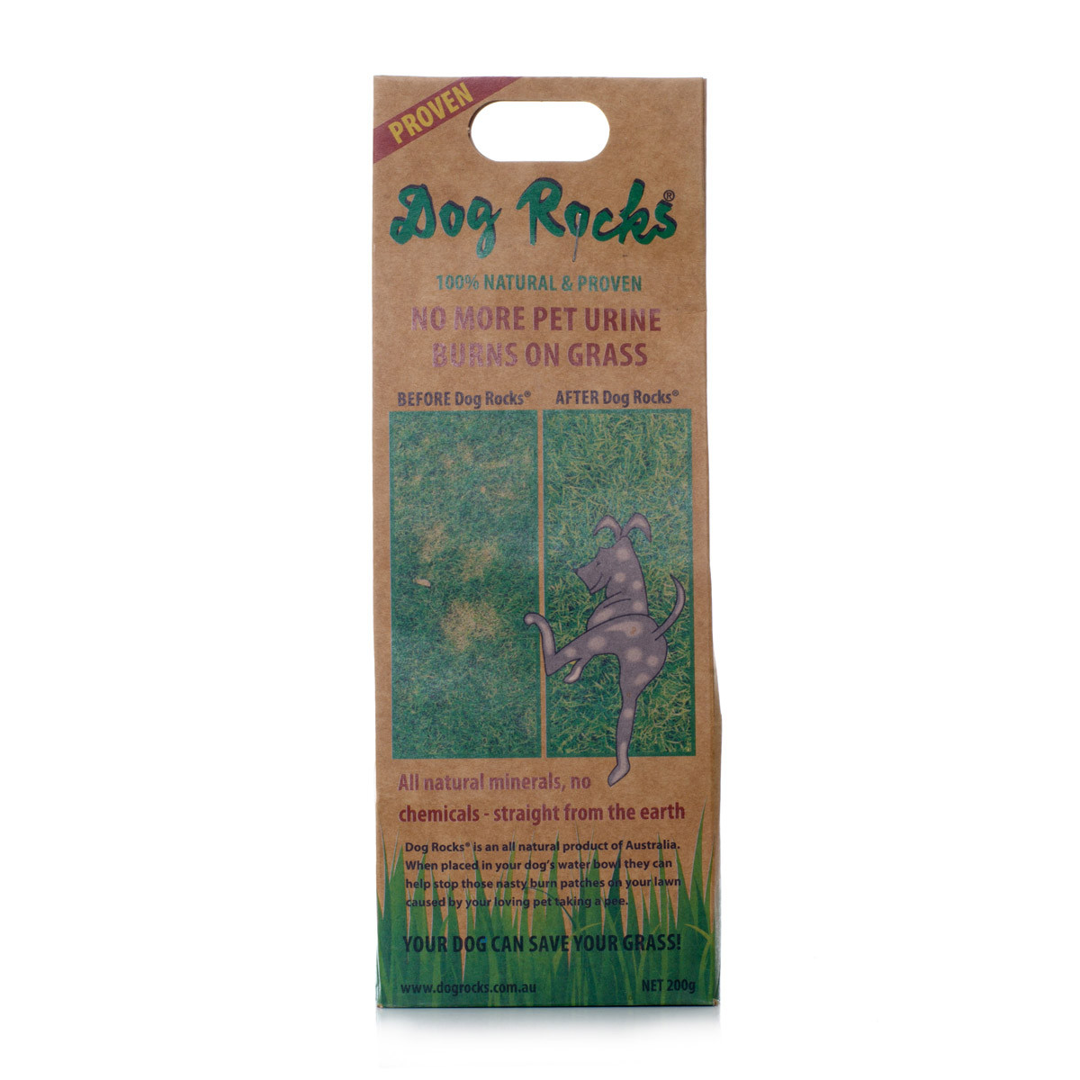 Dog Rocks zijn speciale, natuurlijke stenen die je in het drinkwater van je hond legt. Daardoor verminderen de bruine, gele en rode vlekken op gras, planten en struiken veroorzaakt door urine aanzienlijk. Geen chemicaliën, gewoon resultaat ‒ getest & goedgekeurd door hondenliefhebbers.